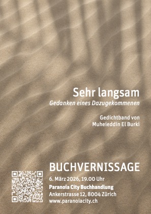 mit Muheieddin El Burki 🗓 Freitag, 06. März 2026, 19.00 Uhr 📍 Paranoia City, Ankerstrasse 12 8004 Zürich Aus der…WeiterlesenFreitag 6. März, 19.00 Uhr Buchvernissage
